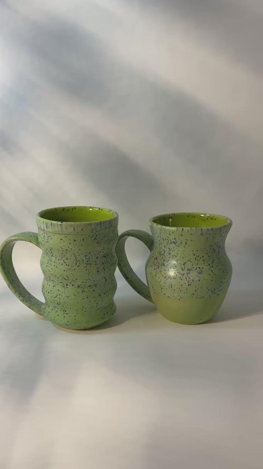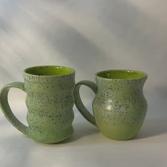 Bring a touch of calm to your everyday routine with the Minty Calm Mug, available in two beautifully sculpted shapes: Bubble Form and Ballroom Form. Each features a serene mint-green satin glaze with playful speckles, achieved using food-safe glazing.