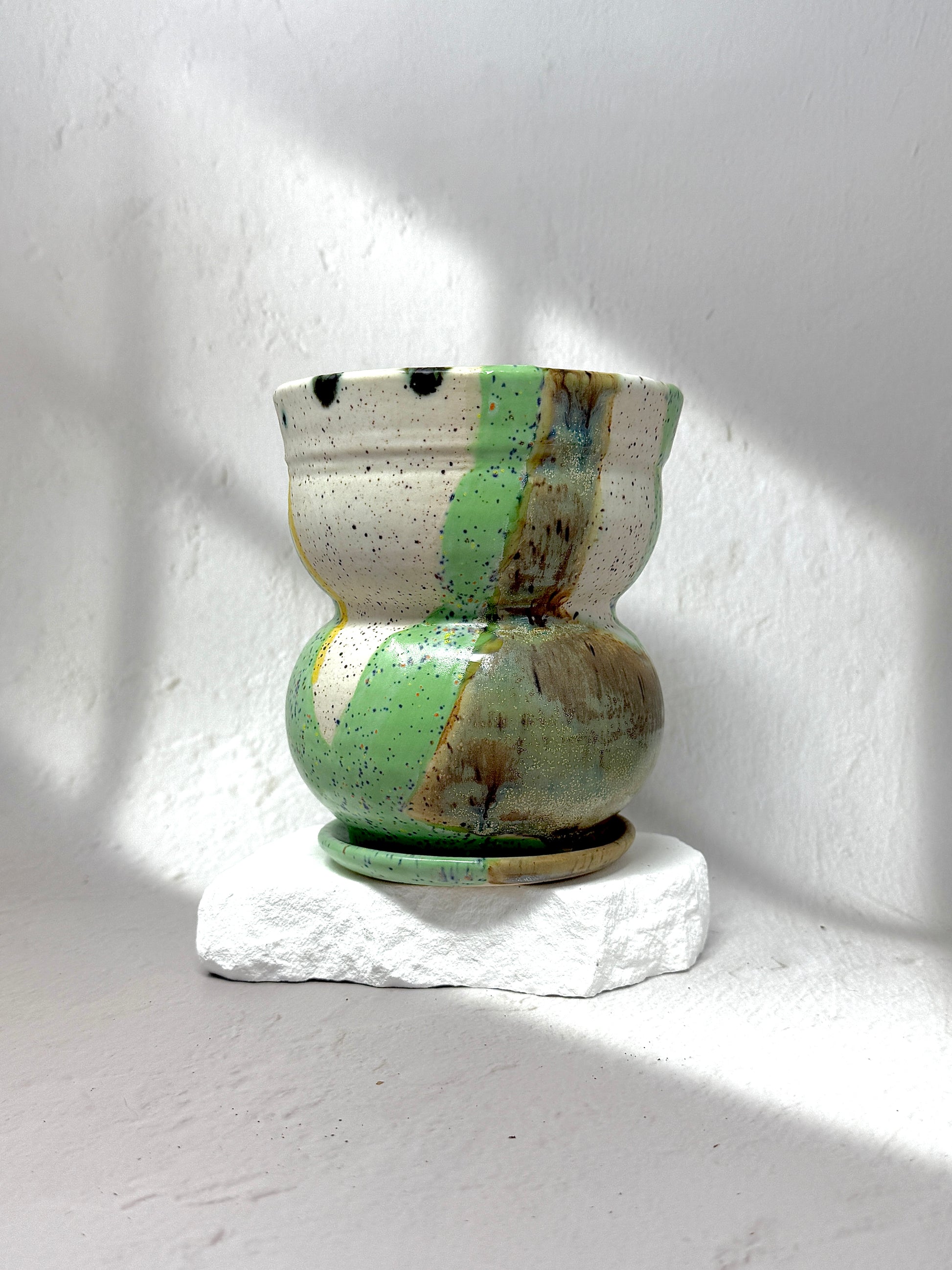 The Ophelia Planter will give you the feel of misty mountain mornings, as her look offers a sturdy yet tranquil form. Its subtle texture and calm glaze palette create a peaceful base for your favorite green life. A quiet sanctuary in ceramic form.
